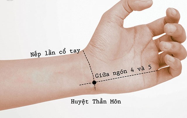 - Bấm huyệt thần môn (nằm ngay cổ tay, phía trong) trong 1-2 phút, kết hợp hít thở sâu.